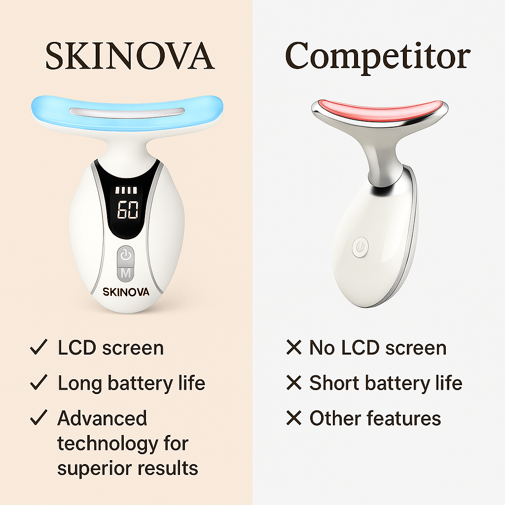 Engineered with professional-grade LED light technology and microcurrent therapy, Skinova™ goes beyond surface-level care — stimulating collagen, reducing inflammation, and transforming your skin from within.